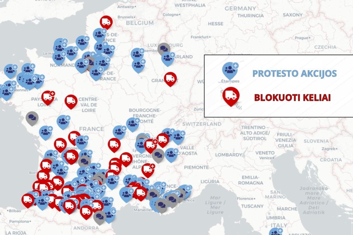 Sinise sümboliga on tähistatud põllumeeste protestide asukohad. Need on samuti koondunud Edela-Prantsusmaale ja riigi põhjapiirkondadesse, kus põllumehed on solidaarsed oma kolleegidega Edela-Prantsusmaal. Just seal on tekkinud suurim pahameel valitsuse katsete vastu radikaalselt võidelda tuberkuloosiga.